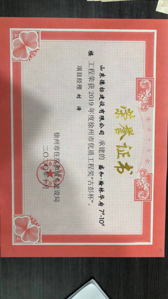 翰林華府2019年度徐州市優(yōu)質(zhì)工程獎“古彭杯”