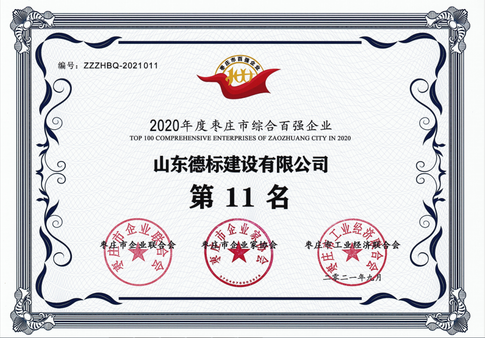 2020年度棗莊市綜合百強(qiáng)企業(yè)