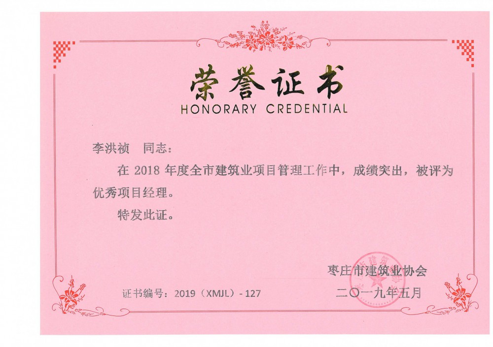 李洪禎-2018年度市級(jí)優(yōu)秀施工企業(yè)項(xiàng)目經(jīng)理