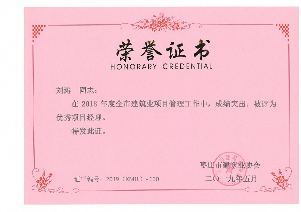 劉濤-2018年度市級優(yōu)秀施工企業(yè)項目經(jīng)理