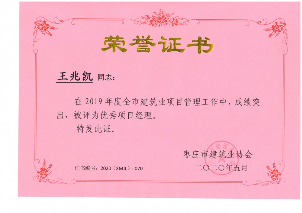 王兆凱-2019年度市級(jí)優(yōu)秀施工企業(yè)及項(xiàng)目經(jīng)理