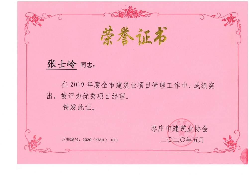 張士嶺-2019年度市級(jí)優(yōu)秀施工企業(yè)及項(xiàng)目經(jīng)理